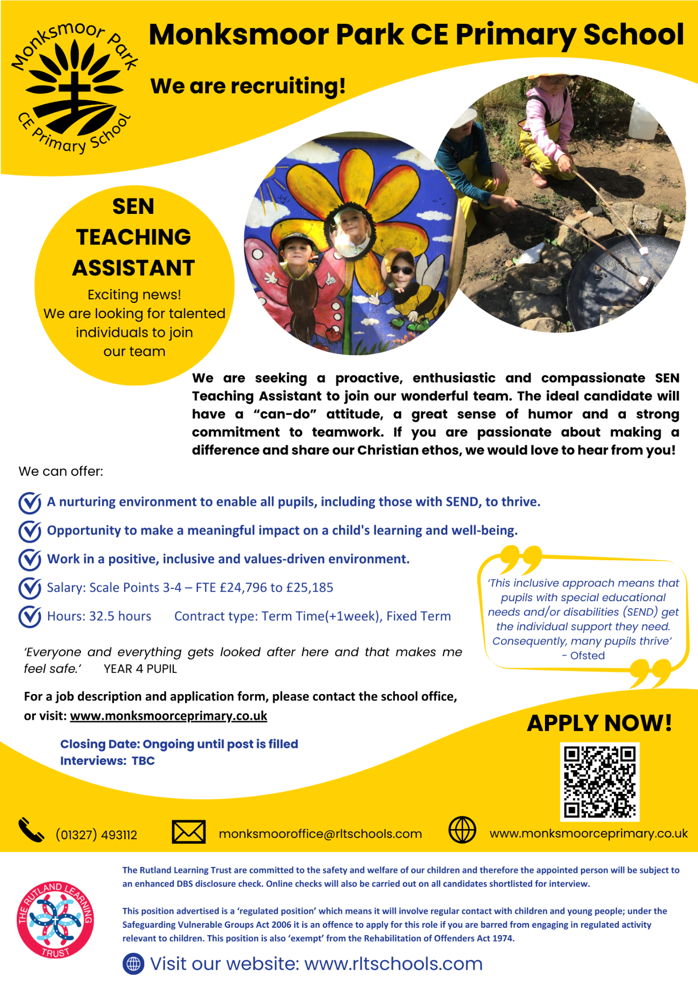 Paper copies of the job description and application forms are available from the School Office by request.