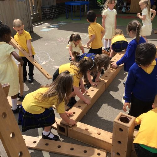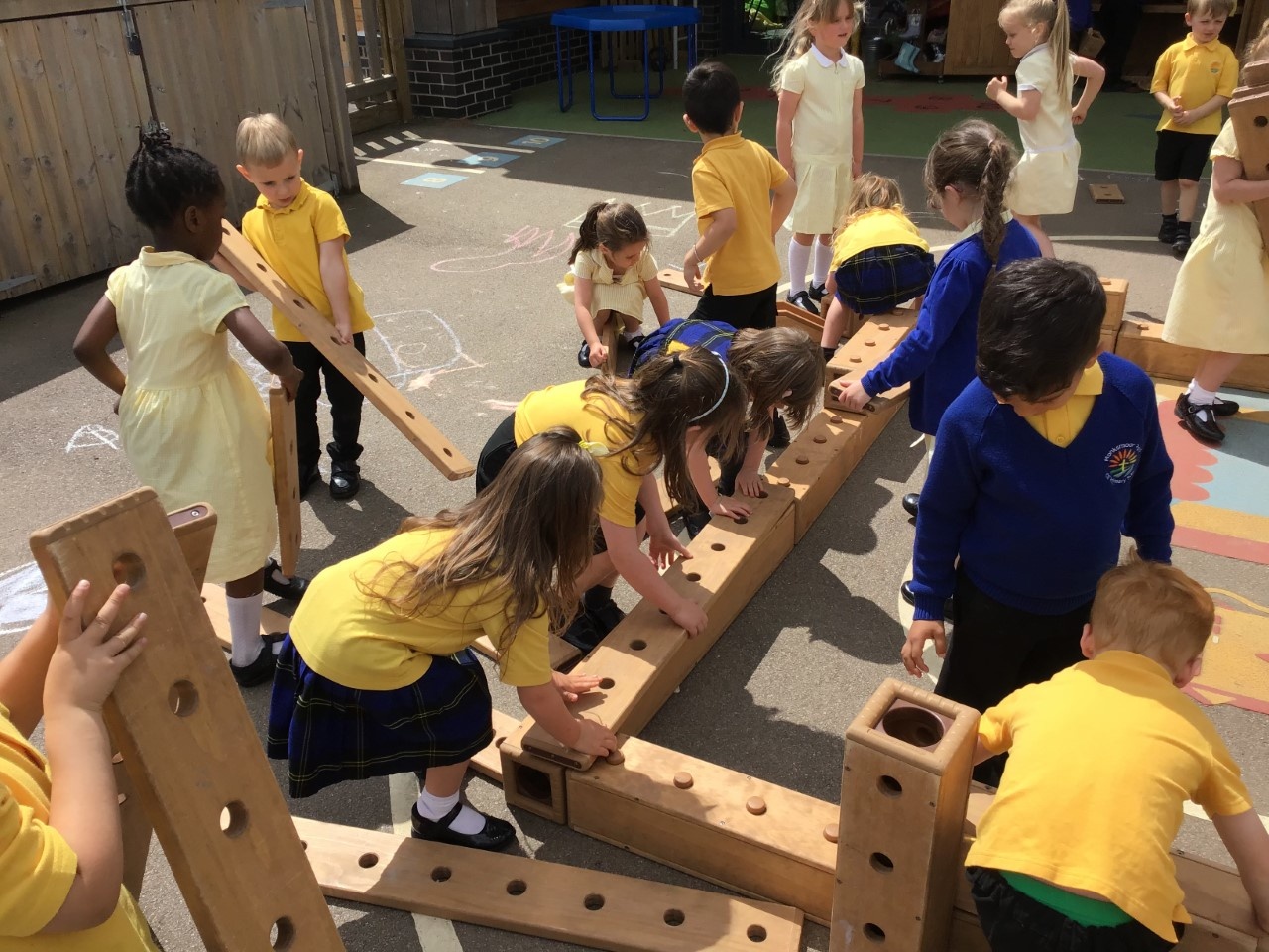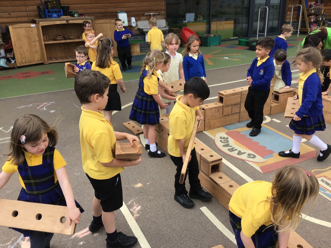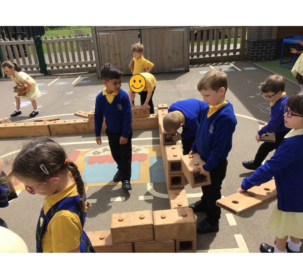 In light of the Jubilee celebrations taking place at the end of the week, the Hedgehogs have been looking at kings and queens in history and how they lived. They have looked at castle structures from the past and present and talked about the differences and what the different castle features are called. The Hedgehogs made their own golden crowns for the Jubilee Street Party and they also worked together outdoors to create their own ‘Hedgehog Castle’.