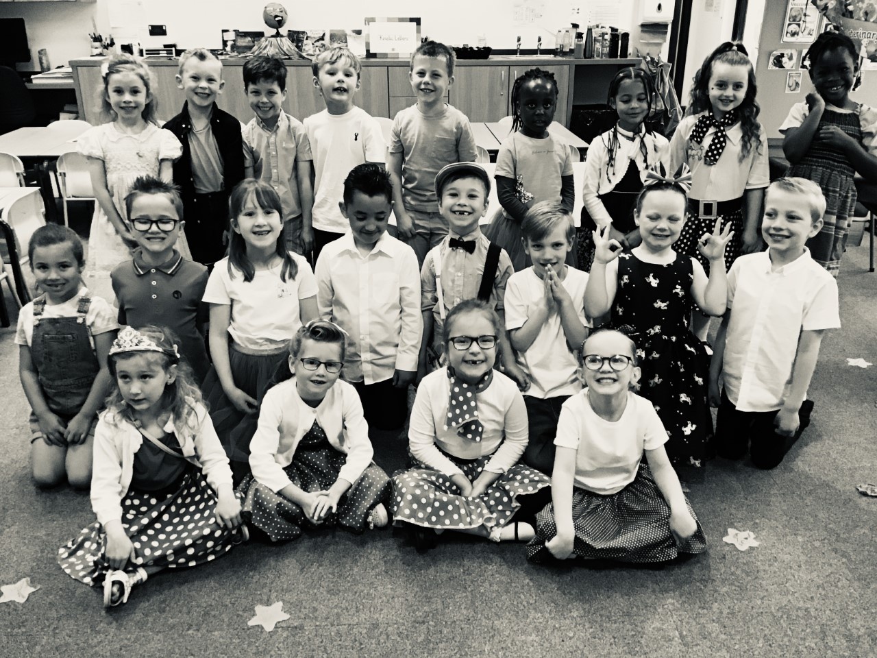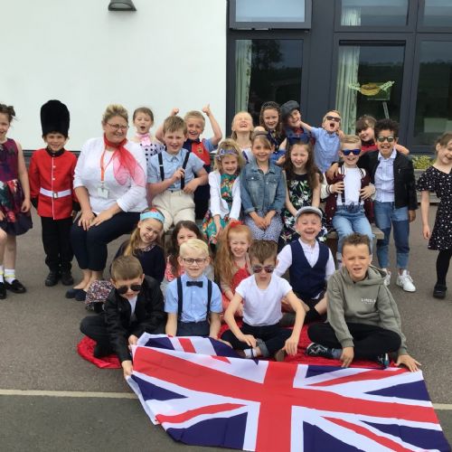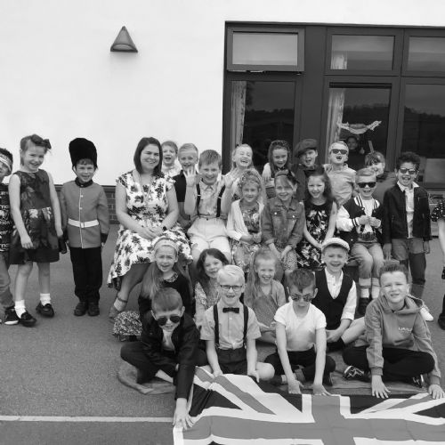 On the last day of term, Thursday 26th May, the whole school celebrated the Queen's Platinum Jubilee. We were invited to wear 1950s inspired outfits to school to reflect the decade that the Queen was crowned in.