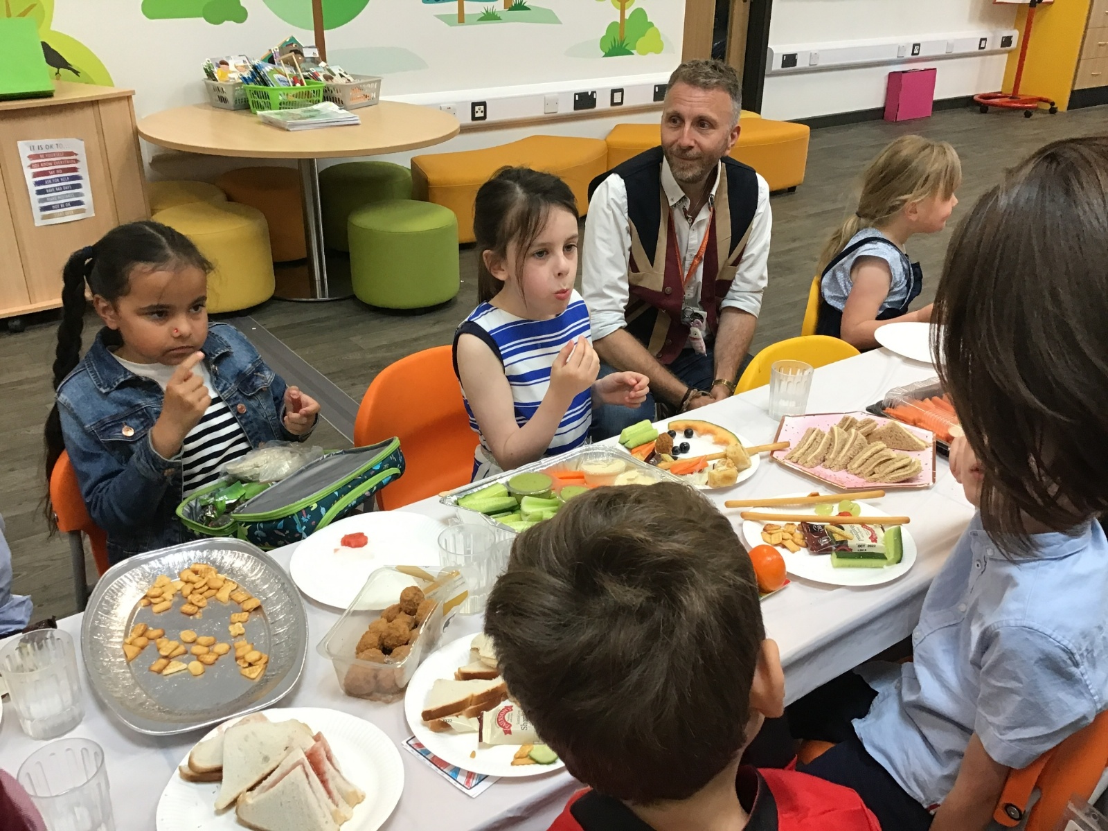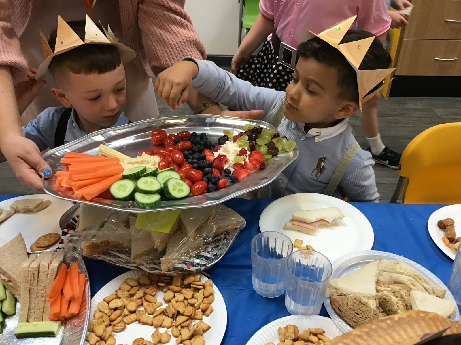 The children shared plates of food that our school families kindly sent in from home. Like a family meal, the children (supported by staff) enjoyed passing plates to those near them, and we all witnessed a lot of sharing and caring for others!