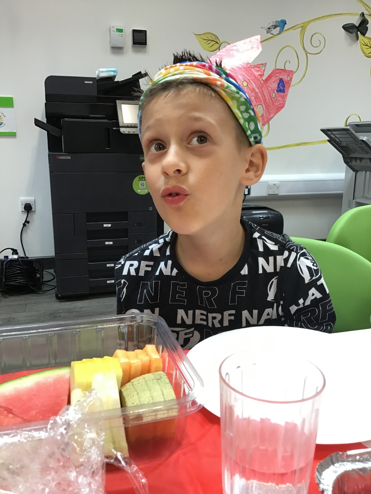 Nursery celebrated in tiaras and crowns they had made earlier in the week, and they enjoyed a special snack time.