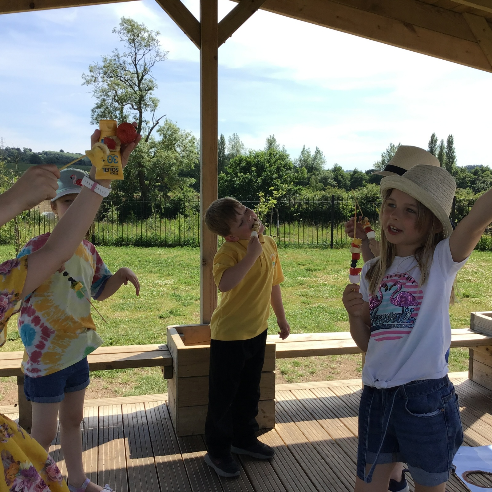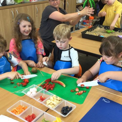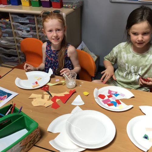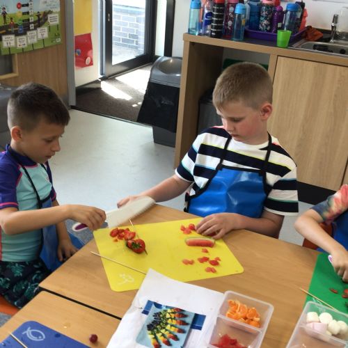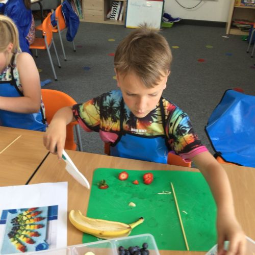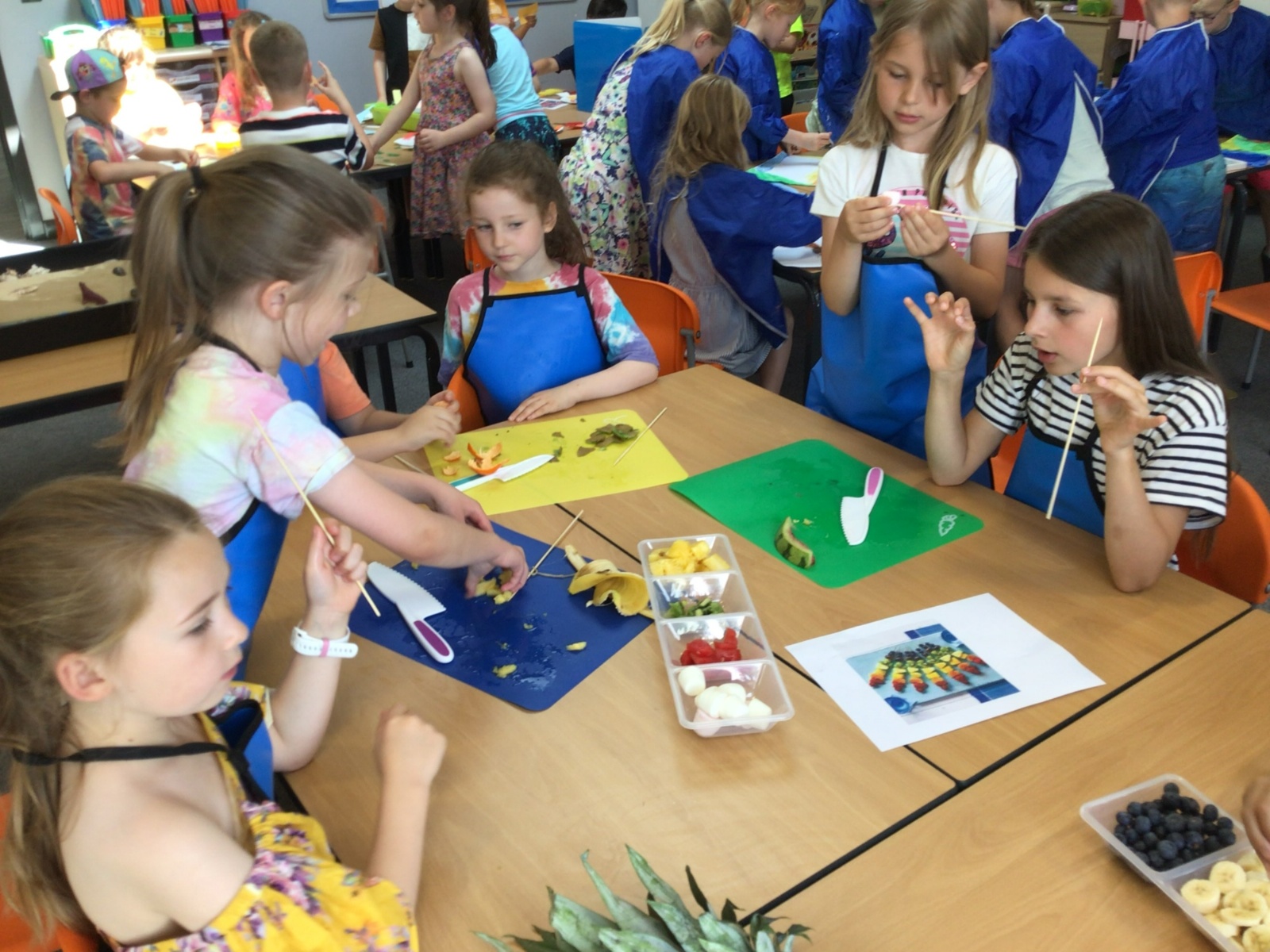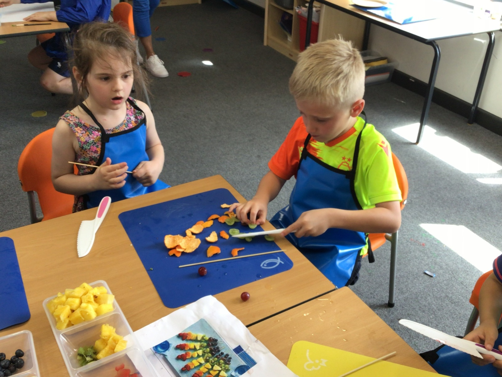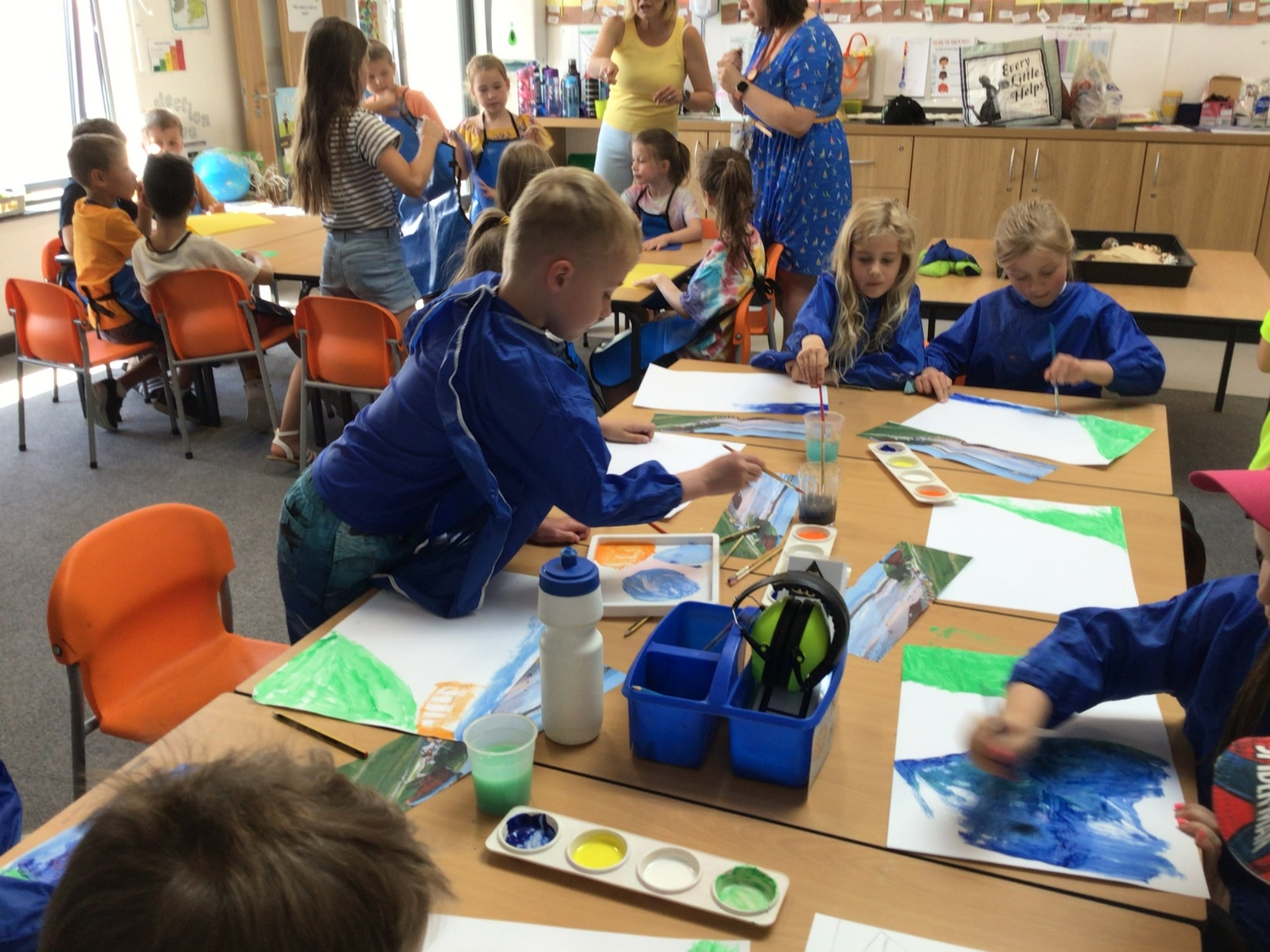 Year 2 had a fun-filled time as they held a day of beach themed activities to coincide with their "Coastline" topic. We learned about the seaside town of Whitby in the past and compared it to beach visits in the present time. We painted landscapes of Whitby beach, chopped fruit to make fruit skewers, made pinwheels, played with a giant beach ball in the sun and made footprints in the sand. What an exciting day! We'll send you a postcard next time!