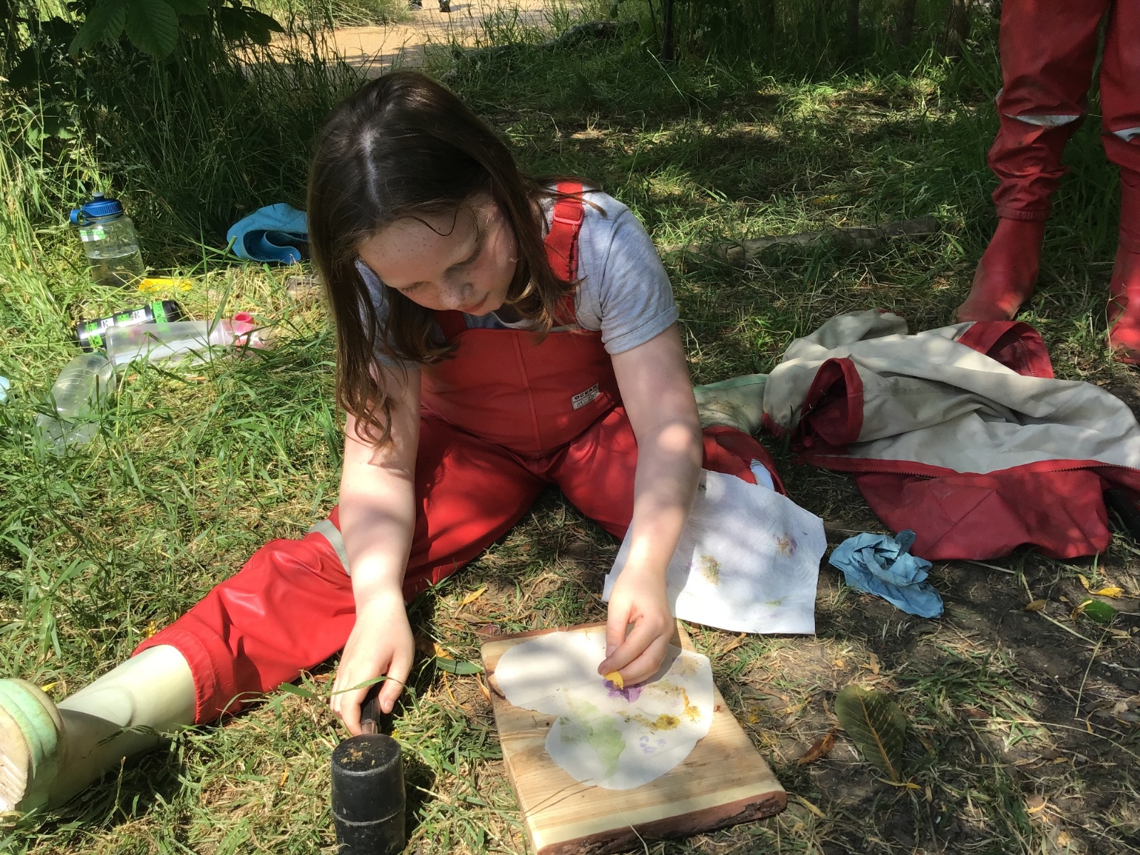 The art of Hapa Zome has created some beautiful results as there are such a variety of colours to be found on site. We are getting better with our aim and at keeping our fingers out of the way of the rubber mallets. The children in Year 5 had the chance to practise their knots by making a macramé keyring.