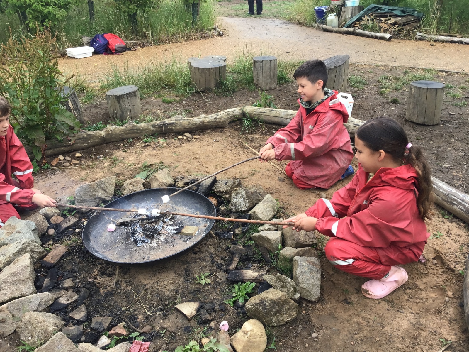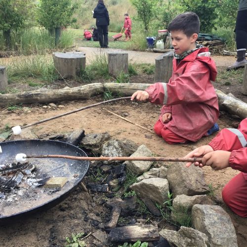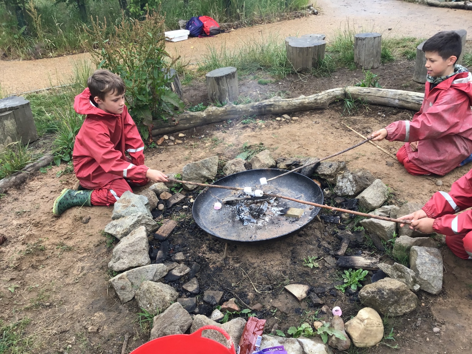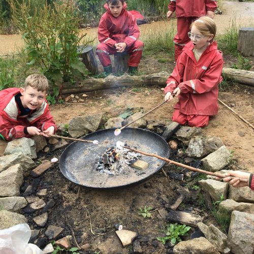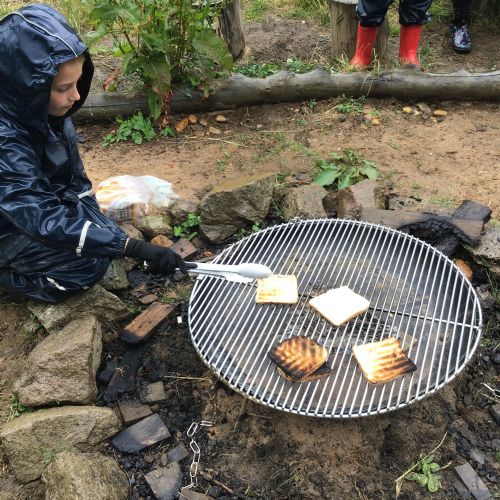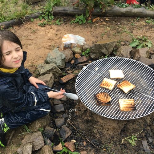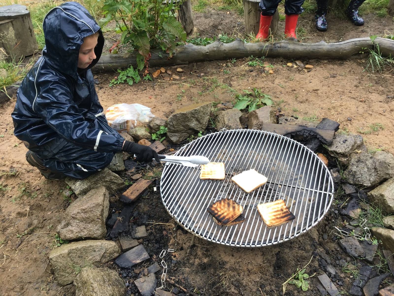 The children have had the opportunity to do so many different activities within their recent Forest School sessions and we have certainly had the full range of weather! There has been a variety of cooking going on from the thrill of observing popcorn kernels exploding into the popcorn we recognise, to marshmallows being toasted for smores and our first try at using the hanging tripod grill to make toast. The snacks definitely taste better outside when you've made them yourself!