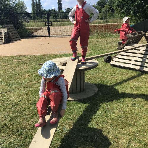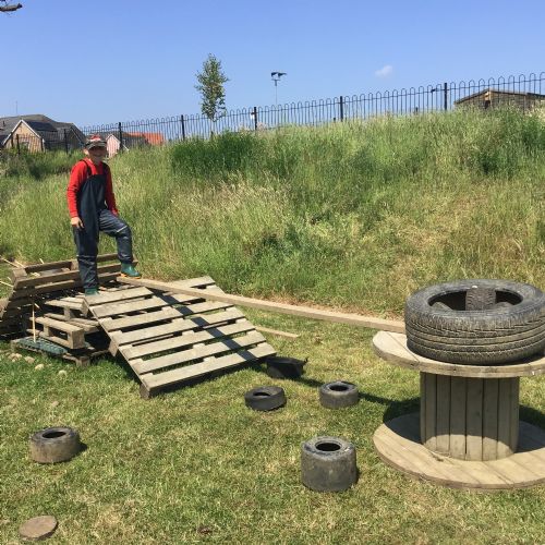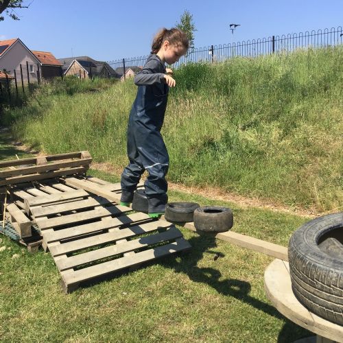 My favourite thing to see has been the teamwork, support and encouragement which has been in evidence when the children work together to create an obstacle course. It is fantastic to see how they help each other and celebrate everyone's achievements as the obstacles get increasingly elaborate!! One of the Year 4 children decided to use one of our den building sheets as the base for a 'board game' which involved rolling balls to see who could get closest to the central stone marker. He then asked some of his friends to try it out and explained the rules. The group spent ages playing the game and there was lots of laughter as well as careful measuring to see which ball was closest at times!