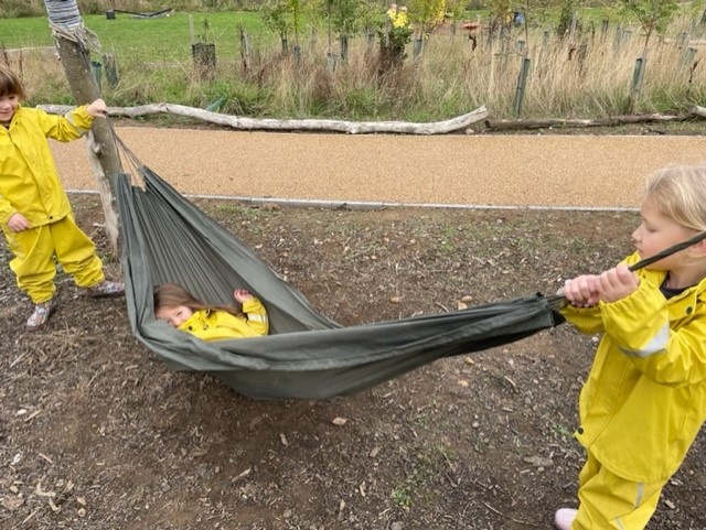 In Forest School they have played games to practise stopping when the duck whistle is blown, enjoyed swinging in the hammock (and taking turns), been digging for 'treasure' in the mud, hunting for bugs under logs and in our bug hotel, using their imagination to build and play with the tyres and pallets, found hidden woodland creatures, rolled acorns and pinecones down tubes and explored how to move up and down a slope. Wow......they have been busy!! A fantastic start Hedgehogs!