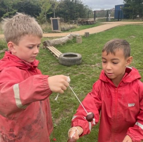 Year 3 have been finding out how to play a traditional conkers game. Their aim was very good! Some of the biggest giggles came from a group who were playing 'rescues'. Great fun was had by tying a rope around your tummy and being pulled up the bank by your friends while escaping shark infested waters!! Mrs Copland thought it was a fantastic example of teamwork, turn taking and a great way to practise knot tying!