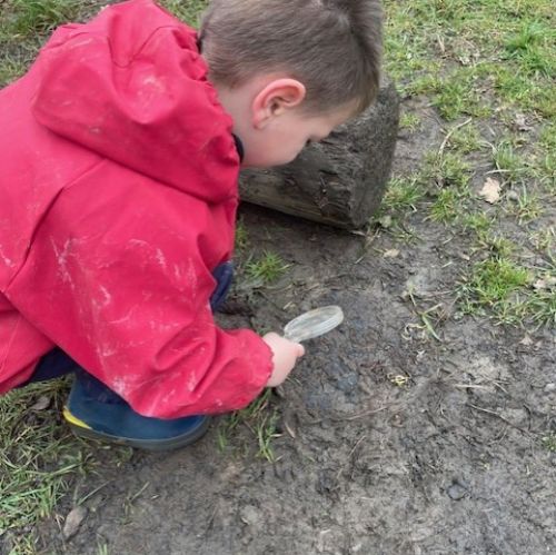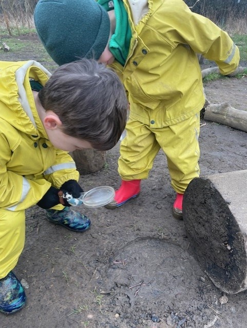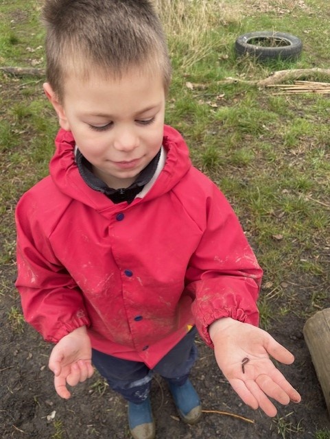 Book week has been celebrated by Reception in Forest School. We shared the story of 'Superworm' by Julia Donaldson and thought about all the ways in which we too are 'super'. We then set off to hunt for woolly worms and discussed how it was much easier for us to find the brightly coloured ones rather than the worms which were more camouflaged to their surroundings. There were opportunities to make our own superworms and play as superheroes as well as all the normal Forest School fun. Some children were very interested in searching for real worms, watching how they moved and working out which end was which!