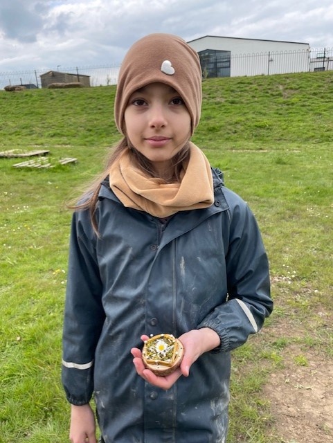 Tool work has been one of the opportunities for Year 5 over the last couple of weeks. The children were able to use a hammer to add nails to a wooden 'cookie' before willow was woven around them to construct a nest. Secateurs were used to cut the willow and trim the ends before the children foraged for moss and other items to put inside their nest.
