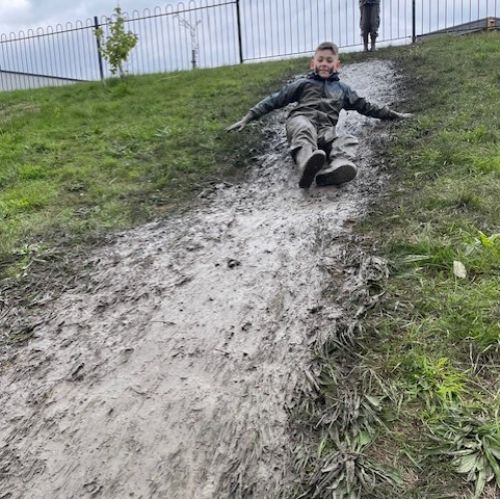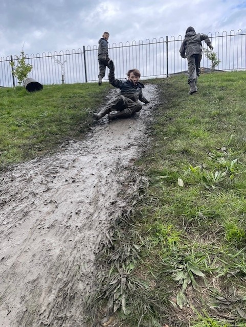 Some of the class decided that the mud slide needed an upgrade. One group worked at trying to flatten out the original one by digging and clearing, while another group decided it would be better to create a new one. Lots of fun was had and there was great teamwork, negotiation and communication in evidence.