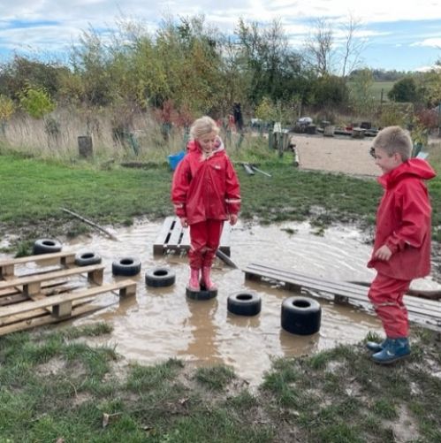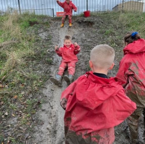 Building a bridge across the huge puddle became an obstacle course for Year 3. Fantastic teamwork, encouragement and compromise was observed. The mudslide was a firm favourite again although after a while Year 3 decided that they'd try and come down it in a way which mixed skiing, surfing and water-skiing.