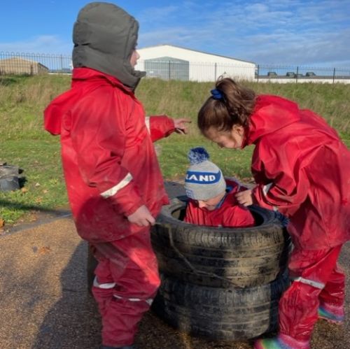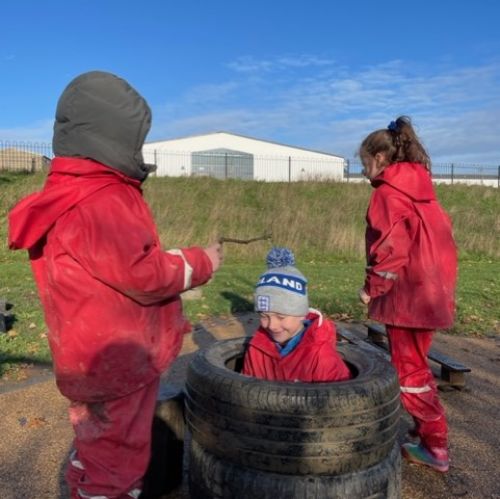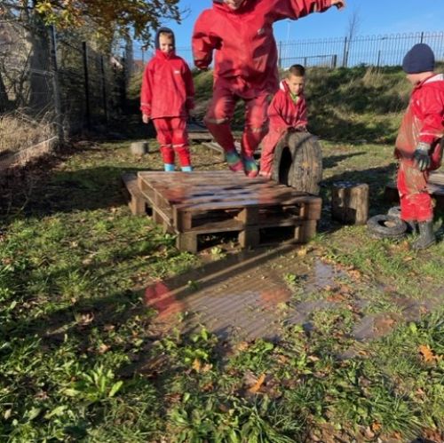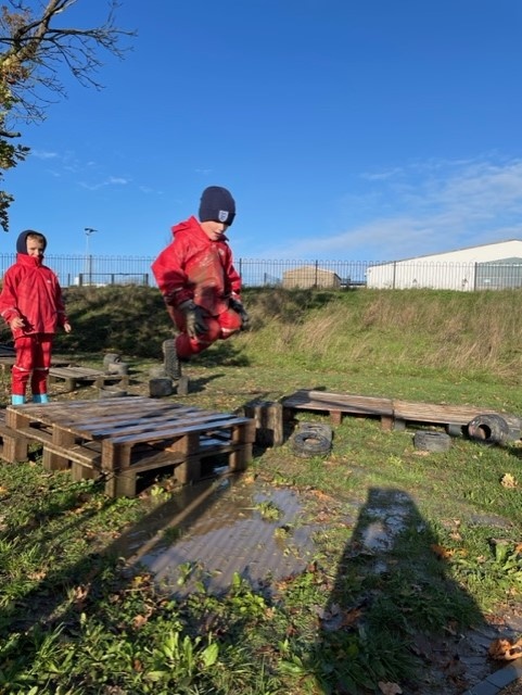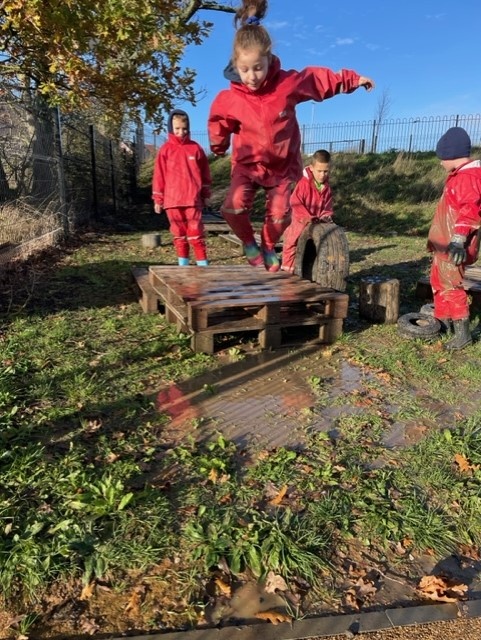 Creative and imaginative juices were clearly flowing within the group as we had an acorn factory set up to provide food for 'Squirrels in Need', children were cooked in large tyre cauldrons and our own jumping platform was made to enjoy a newly created puddle!