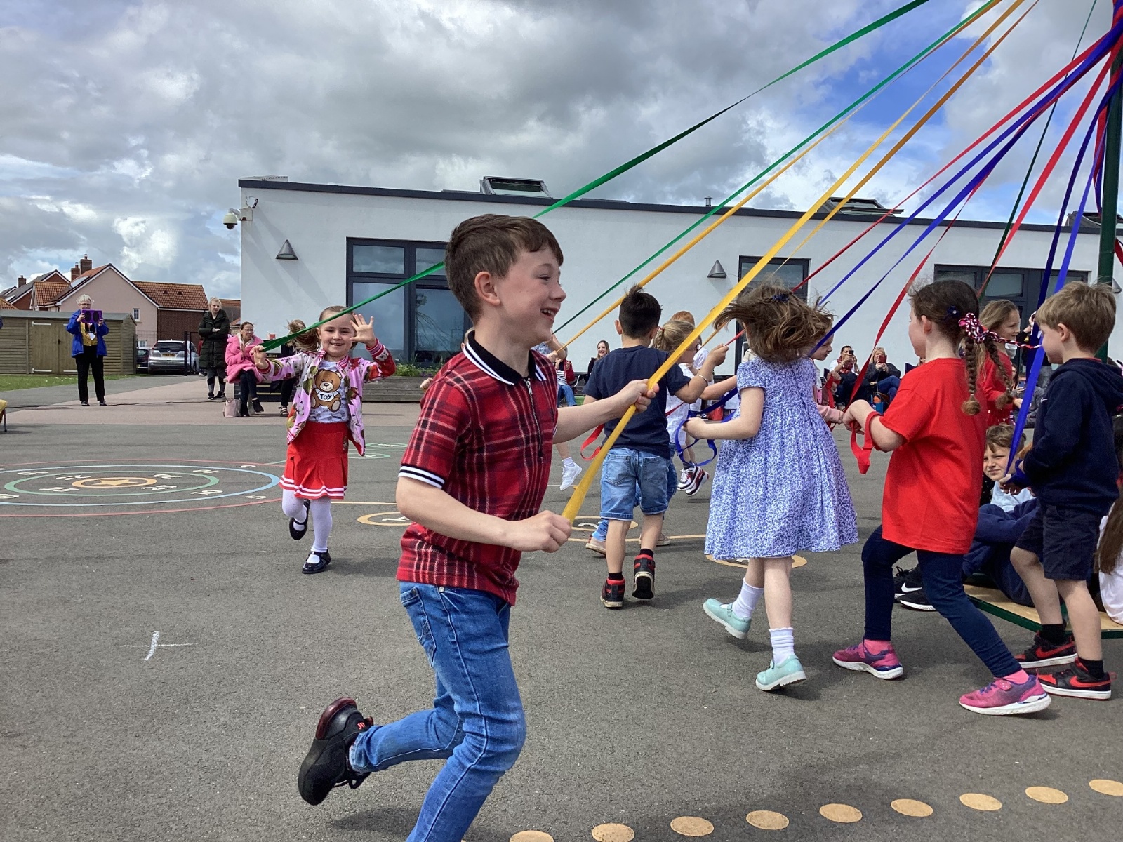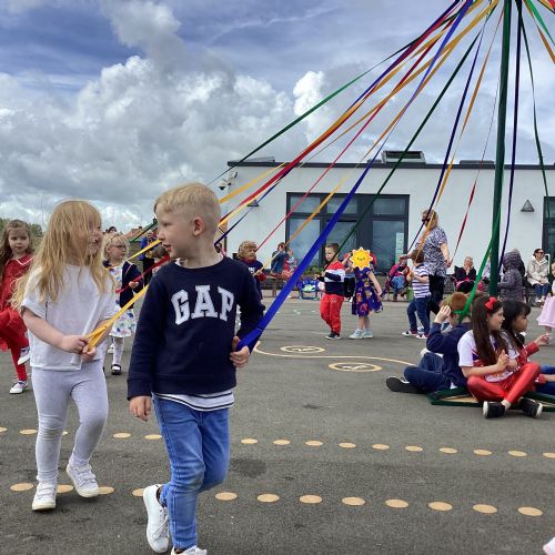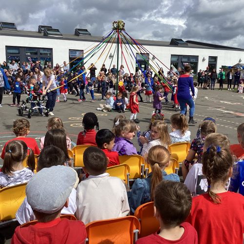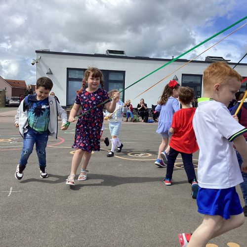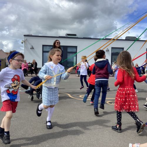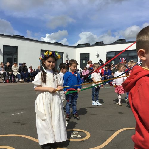 An adjudicator recently observed us select at random two children from across Reception to Year 4. In the future as our school ages, and we have a full complement of year groups we hope to have our Year 6 pupils be crowned King and Queen with the younger year groups taking on different May Day roles.