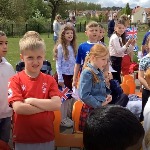 We had a few speaker issues at the start of the event however the school choir did an admirable job of trying to continue and were very professional. Once ready they sang the Coronation Day song beautifully to the whole school and a parent audience.