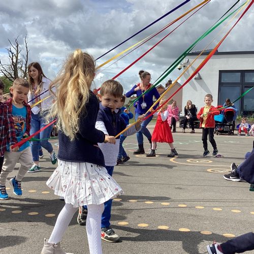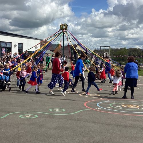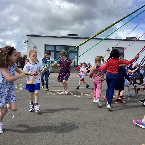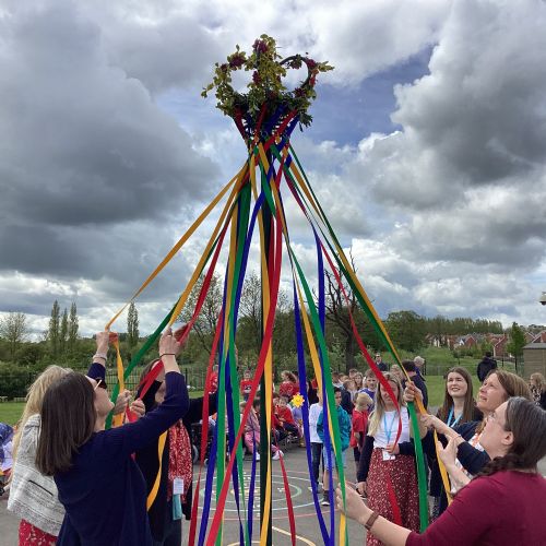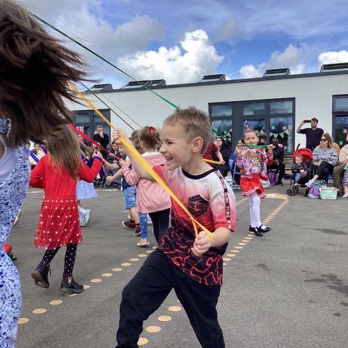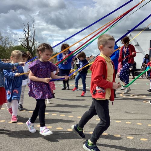 Throughout the school we have been learning about the May Day festival and just like our first May Day event in 2022, each class focussed on learning a traditional Maypole dance in their PE lessons recently. Everyone was excited to finally be able to dance in front of an audience. The children held on to their Maypole ribbons battling the strong breezes, we think you'll agree that they did a fantastic job!
