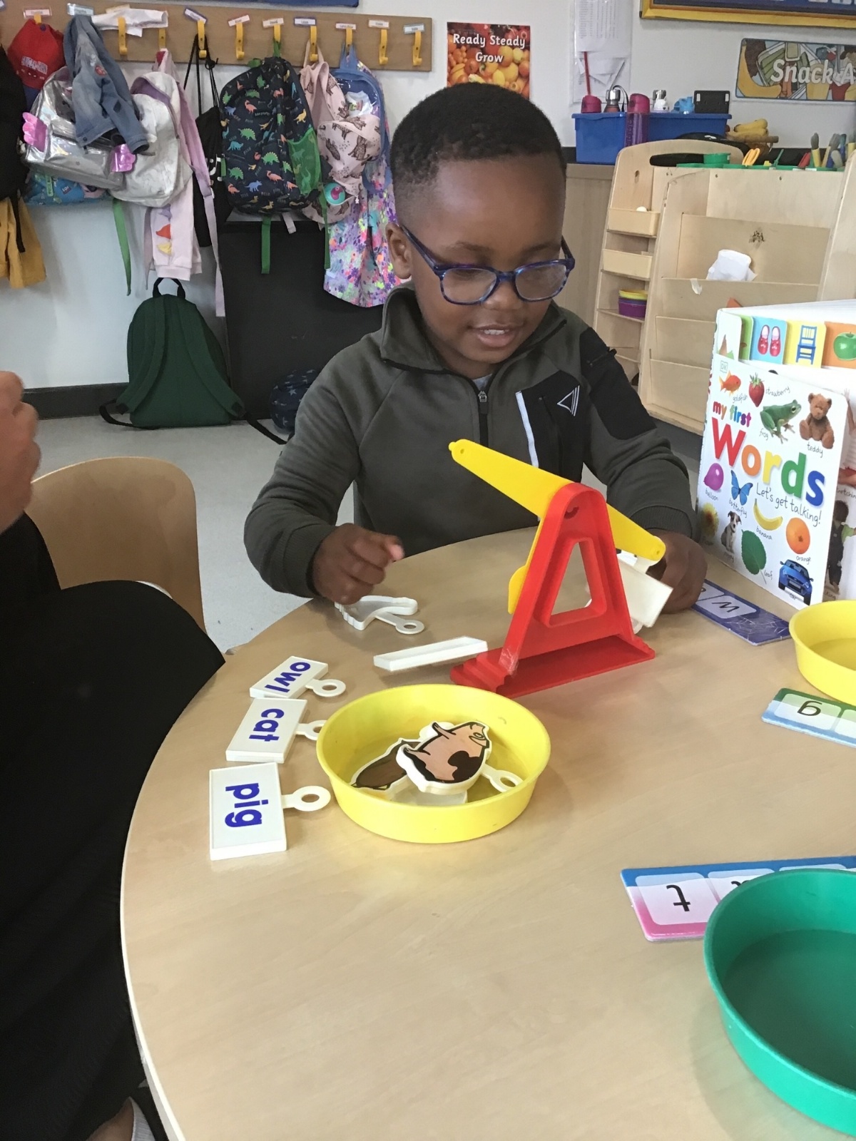 Another busy week in Nursery and so fantastic to see the children using their phonic knowledge by practising their Fred Talk to sound out and read words. The outside area was home to some great teamwork as we built some shady dens and structures, whilst inside we worked on counting out small world fruit to feed to the hungry baby monkey from the story Monkey Puzzle.