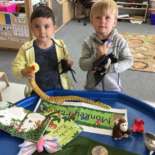We have enjoyed 'Monkey Puzzle' this week and the children have enjoyed practising sorting and matching sentences from the story, creating 3D zig-zag monkeys and using toy animals to orally retell the story.