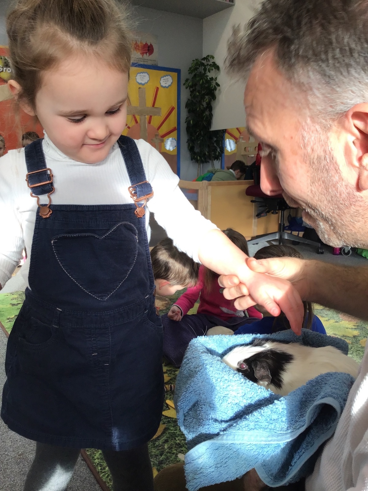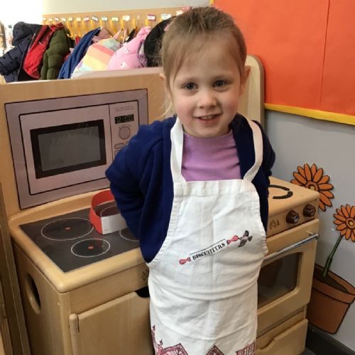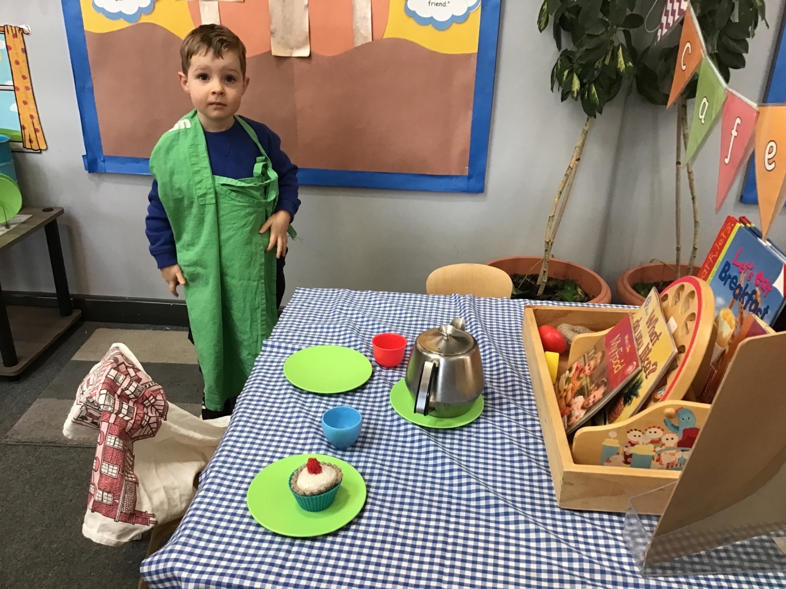 We have begun our new Healthy Eating topic 'Ready Steady Grow' this week and the children the opening of our new role-play area cafe. The children have continued to impress with their balance bike skills and we have also been retelling the story of Goldilocks and the Three Bears, acting the story out as well as making a bear house outside with the wooden building blocks.
