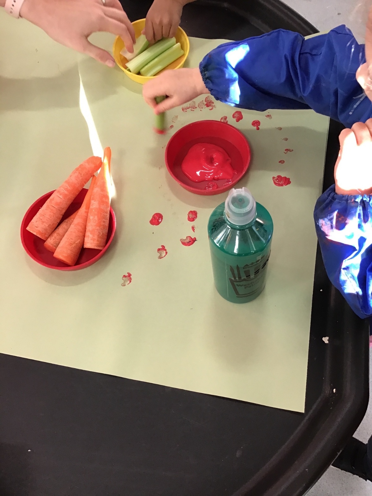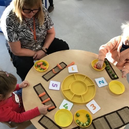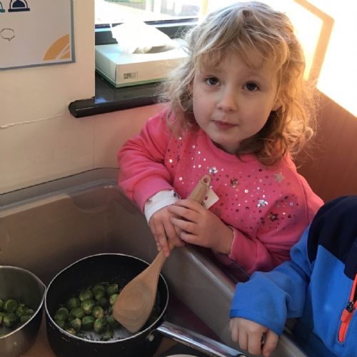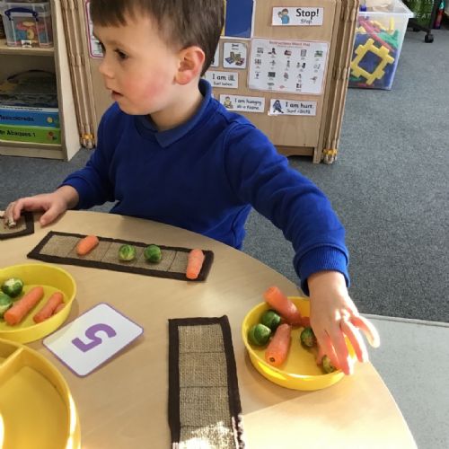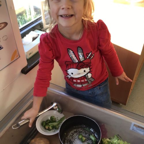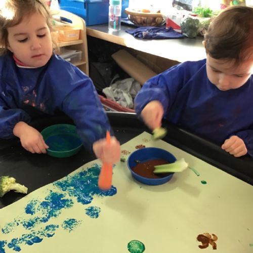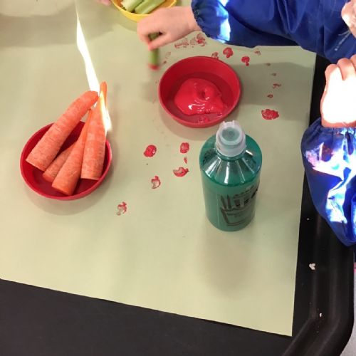 Nursery have been learning about healthy eating and vegetables this week as they have explored the story 'Oliver's Vegetables.' The children have learned how to chop vegetables with a knife and have even found out that they can use some vegetables for mark-making and writing.