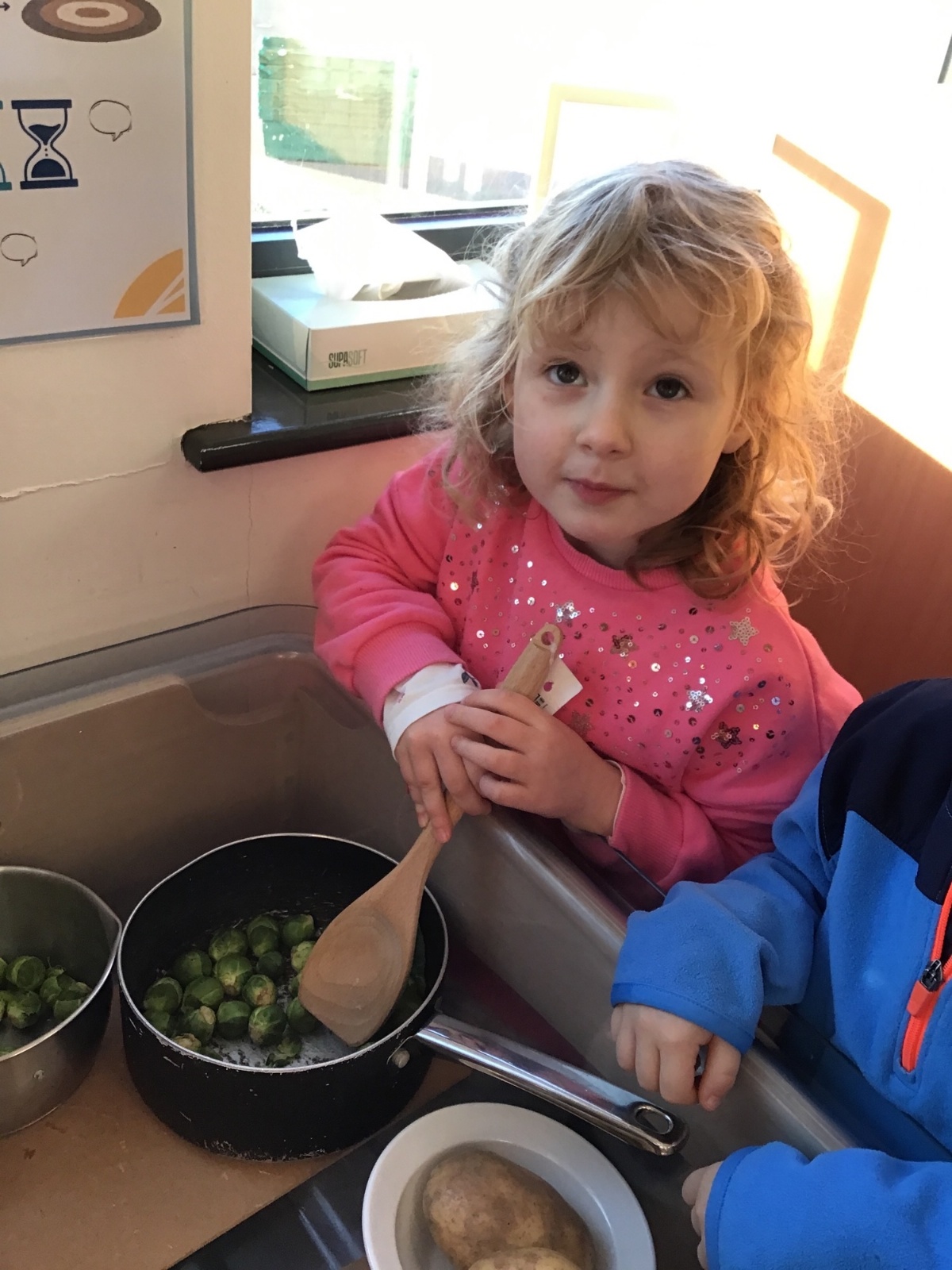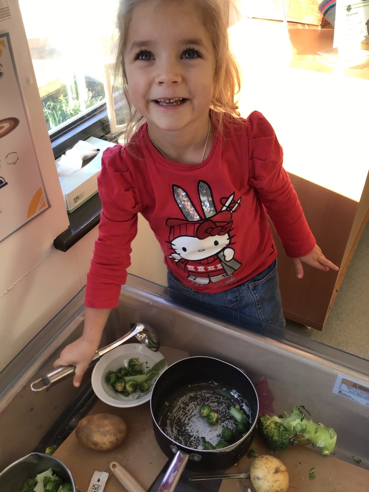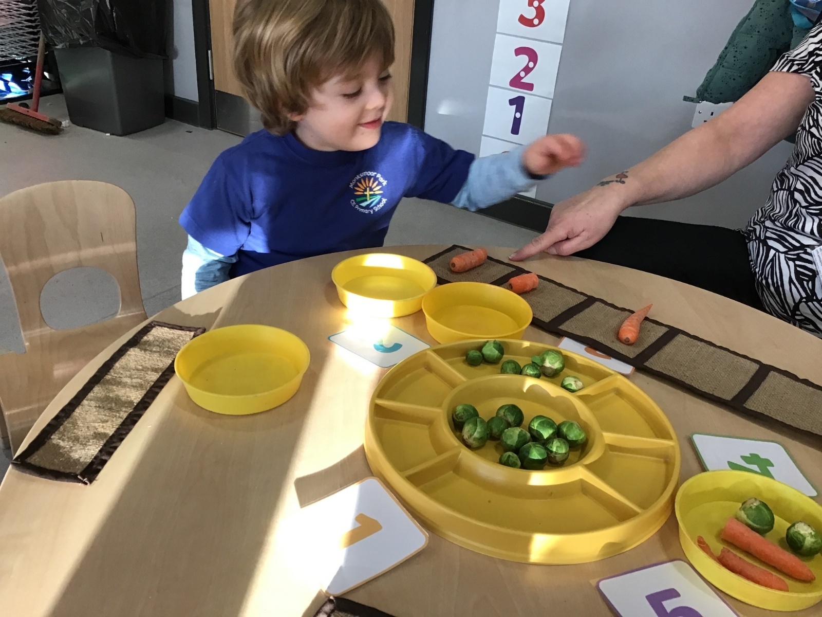 Nursery have been learning about healthy eating and vegetables this week as they have explored the story 'Oliver's Vegetables.' The children have learned how to chop vegetables with a knife and have even found out that they can use some vegetables for mark-making and writing.
