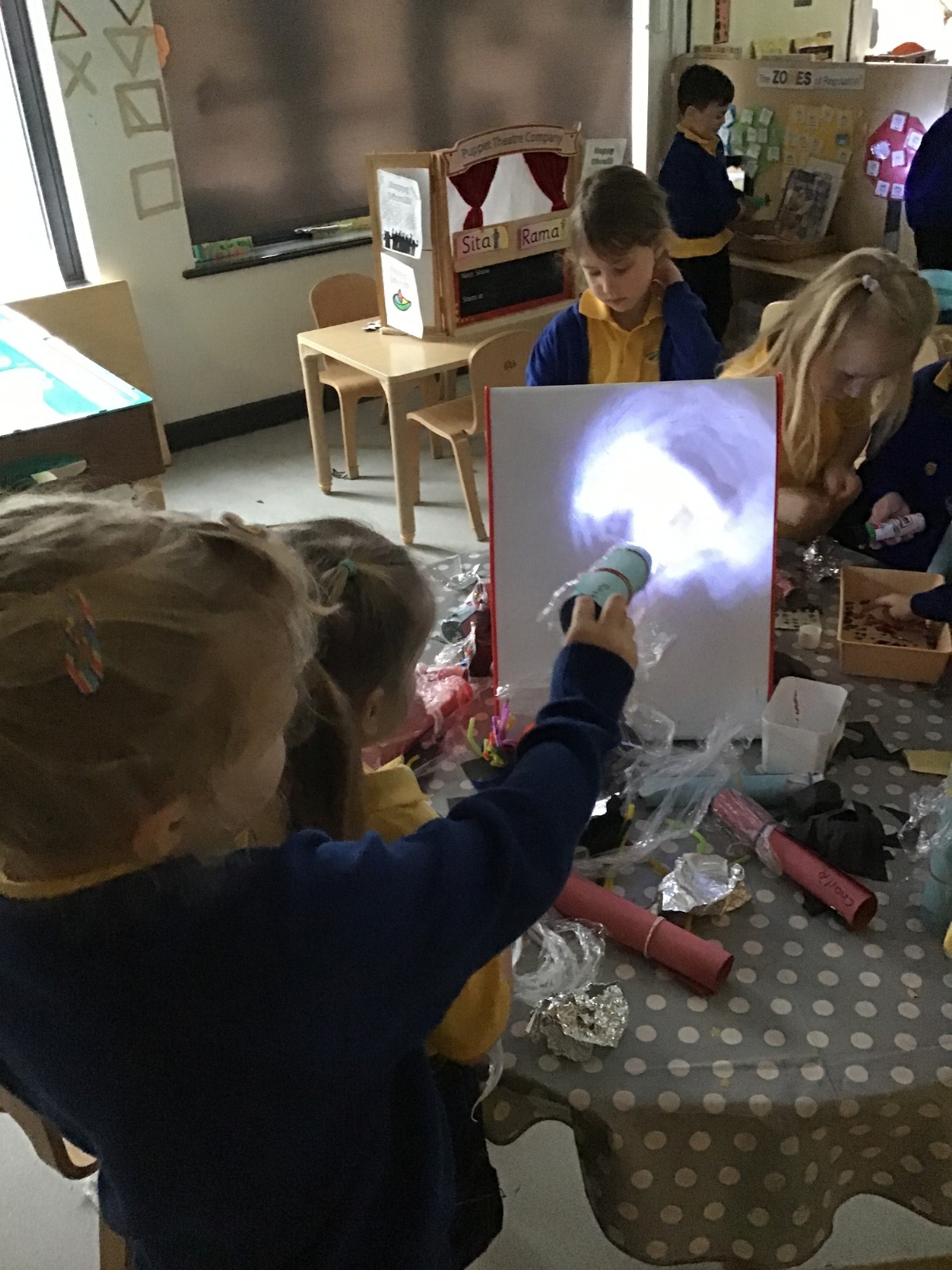 This week Hedgehogs have continued to investigate light using torches, experimenting with tubes and filters, and finding ways of seeing shadows using their own designs. We have also learnt more about night and day and created silhouette images to develop this. We shared our Advent wreath in Collective Worship and have been practising for something very special........... we look forward to seeing you all next week!!