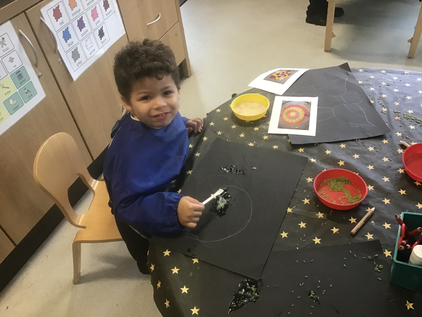 We have also enjoyed learning about the festival of Diwali, creating rangoli patterns with coloured rice.