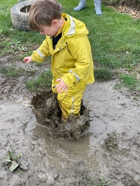 Some of the children in Reception enjoyed their first visit to our Forest School this week. We had so much fun playing in the muddy puddle, hunting for minibeasts and helping Mr Owl find his woodland friends who had hidden themselves around Forest School. Mrs Copland showed us her funny duck whistle and we learnt that we have to 'freeze' when we hear it. She was very impressed with how well we could put our suits and boots on ourselves.