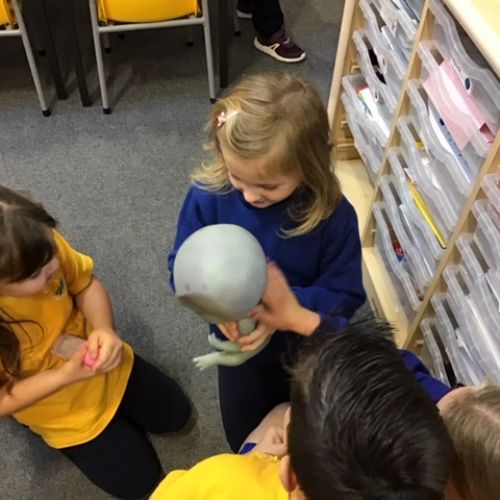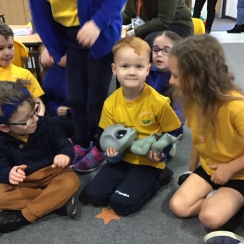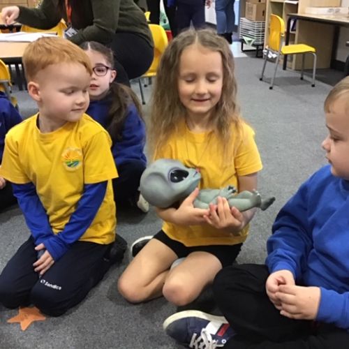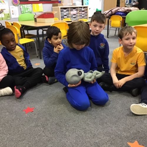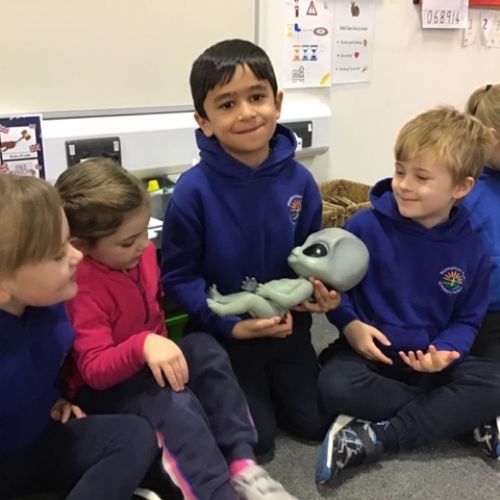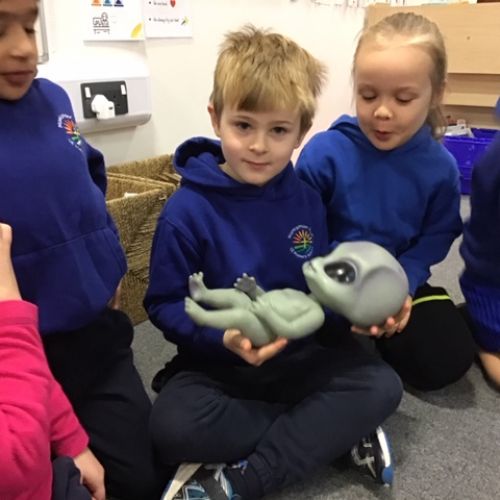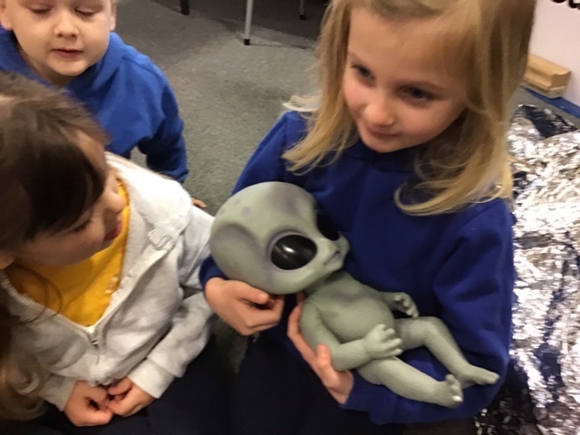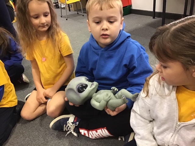 Year 1 have been very excited because our alien egg hatched this week. We were surprised to see how cute he was and all wanting to give it a hug. We talked about how we look after human babies and thought we would try to look after the baby alien in the same way. We made it a nice cosy bed to get lots of sleep and have been feeding it milk from a bottle.