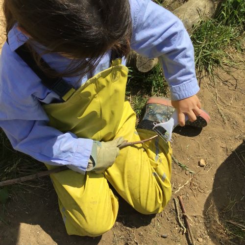 Year 1 whittle and weed at Forest School