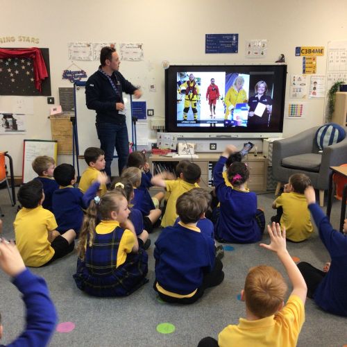 On Wednesday 22nd May we were lucky to have a visit from the RNLI. James, one of their volunteers, spoke to us about how to keep safe near the water. We learned all about the meaning of the RNLI flags, what hazards to look for near the water and how to float in a star shape if we face difficulty. It was perfect timing for all those beach holidays during the half-term break! We made our own posters to show our learning which will be sent home soon to share.