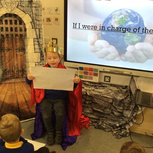 Year 2 have enjoyed getting to grips with their poetry unit this week in English. Over the coming weeks we will be writing our own poems based on “If I were in charge of the world…” so we had an exciting experience to generate ideas. The children thought carefully about what they would keep and banish if they were a world leader. We created our own “kingdom” and told everyone what the rules were going to be.
