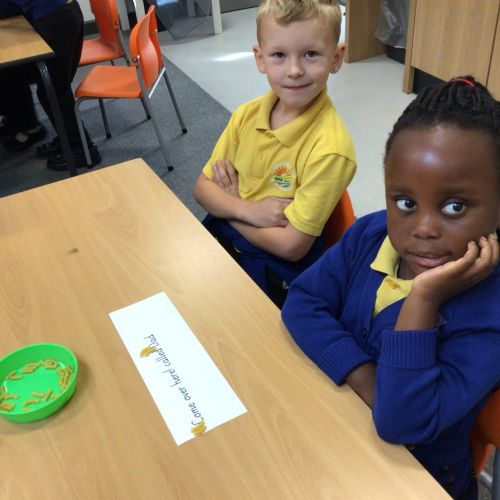 Squirrels have been working really hard this week. They are becoming more independent in the classroom and know how to get organised for our learning. In English we have been looking at the text "George and the Dragon" by Christopher Wormell, revealing the story a small part at a time. We have been working hard on our vocabulary. On Thursday we had some fun experimenting with dialogue by using macaroni to represent the punctuation!