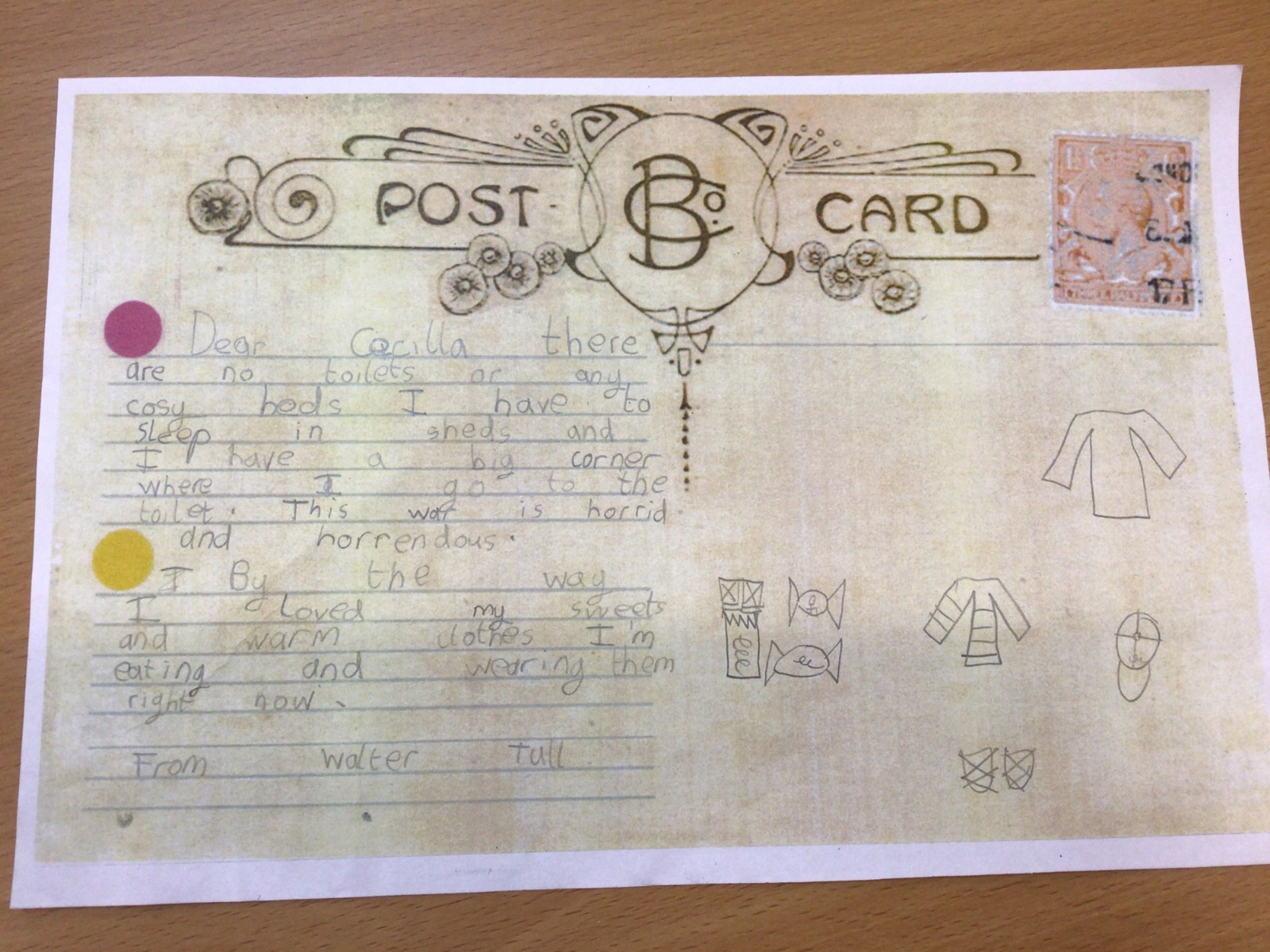 We used our understanding to write postcards in role as Walter Tull himself and took part in some team building activities of our own to simulate some of the challenges of life in the trenches. We had to learn to be resilient, communicate and work together when facing difficult challenges. One of the most interesting parts of the day was discussing how many of the posters encouraging soldiers to sign up for war used the language of football as clever wordplay to encourage young people to join. The children created their own posters using this concept. We had a great day and hope the children took lots of learning from it! Thank you to all who have contributed towards the costs of this experience so far, if you haven't, there is still time to make payments via Pay360. Thank you!
