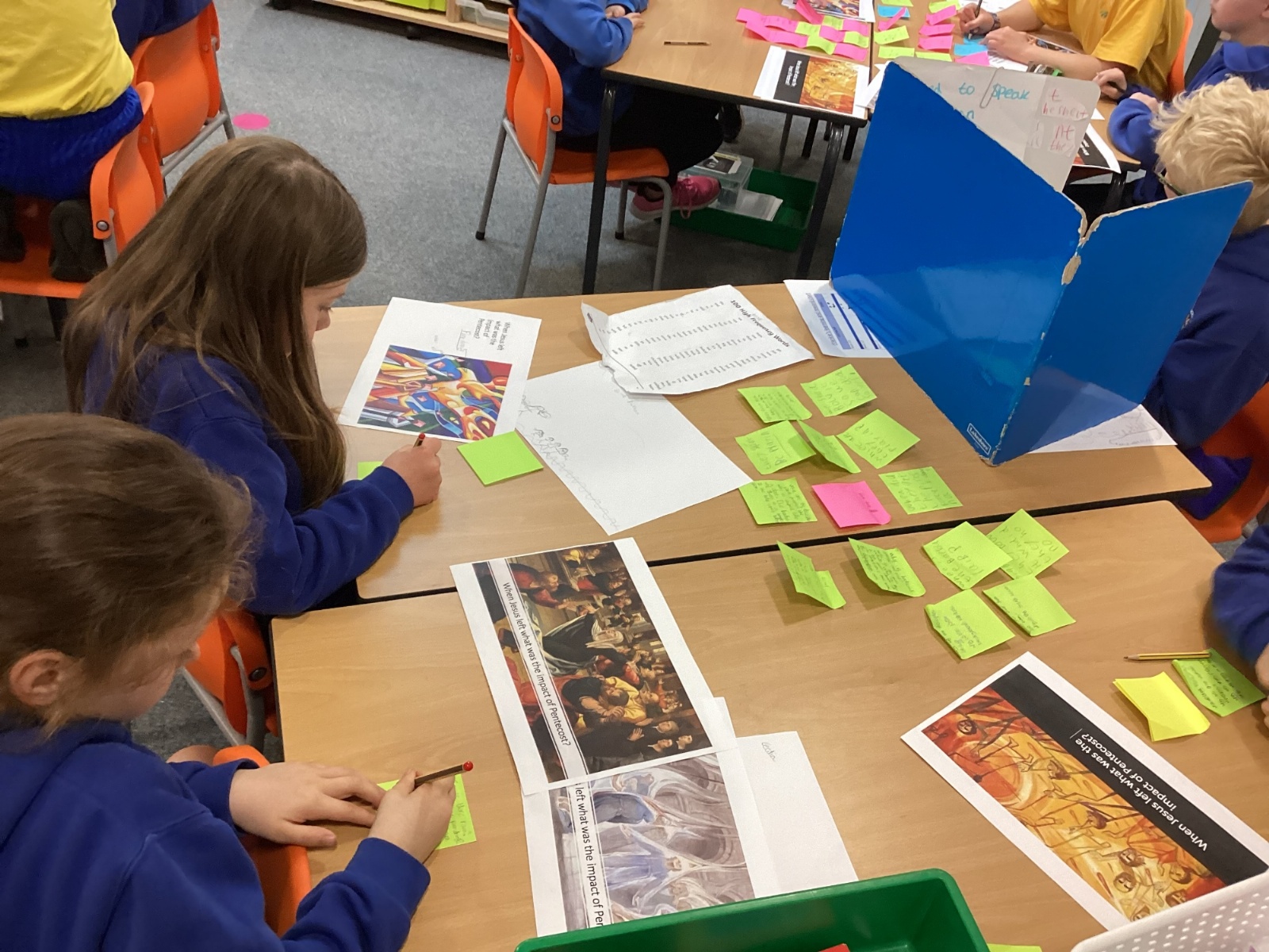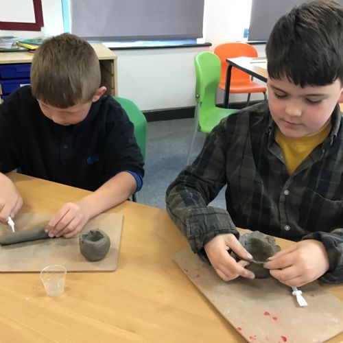 In art and design we explored the method of creating a pinch pot out of clay. In RE the children have been looking at pictures of the Pentecost and have been identifying Christian symbols.