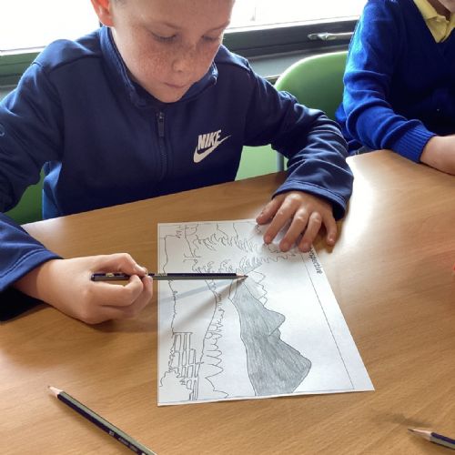 As part of our topic learning we have looked at how artists use a technique called ‘atmospheric perspective’ to give the appearance of mountains at different distances from the viewpoint and how the use of colour can evoke different feelings based on cool and warm colour choices. As part of the learning we had a go at applying tonal sketching, cross-hatching and blending as well as applying a ‘wash’ using watercolour paints.